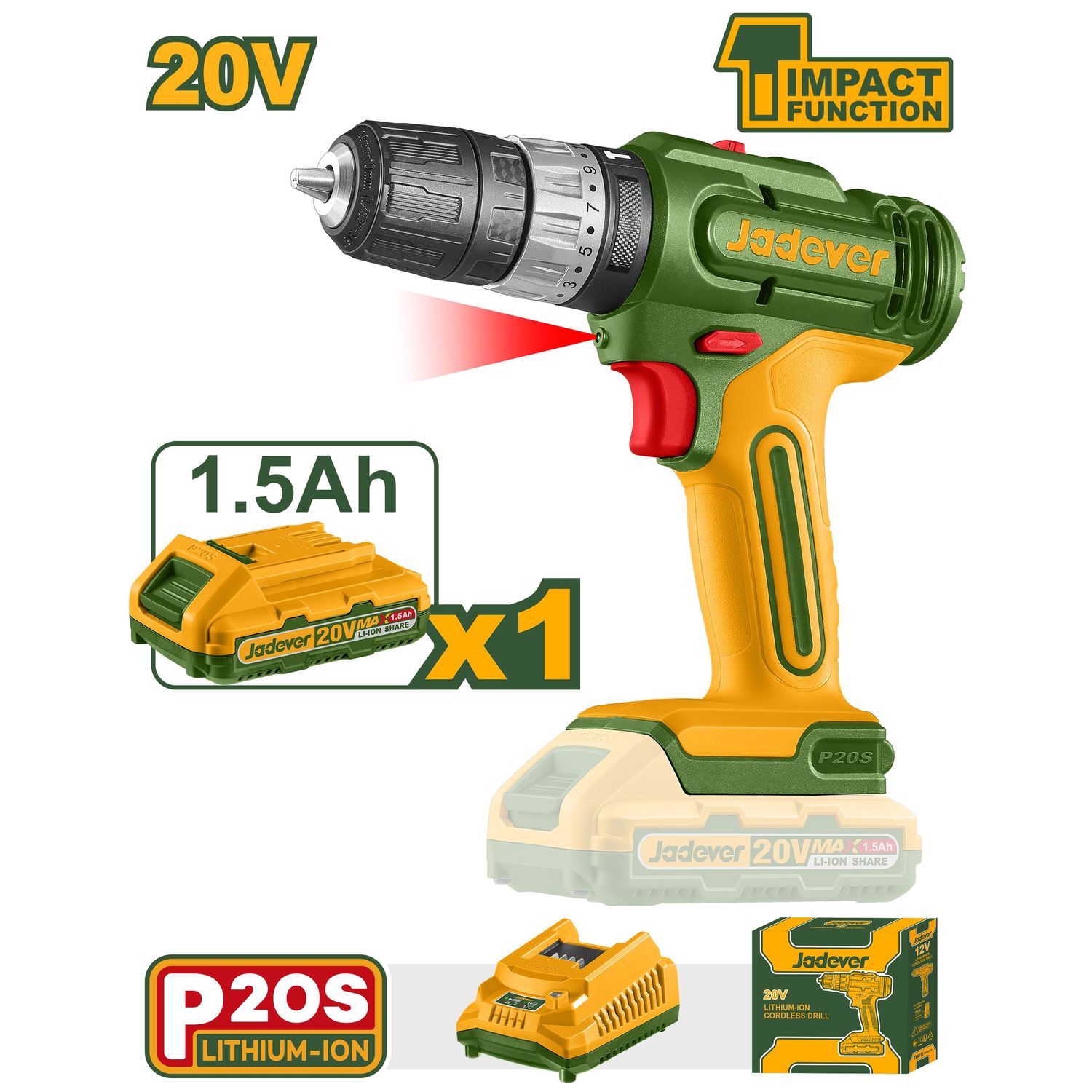 Atornillador Percutor Jadever 20v – 10mm, 1 Batería