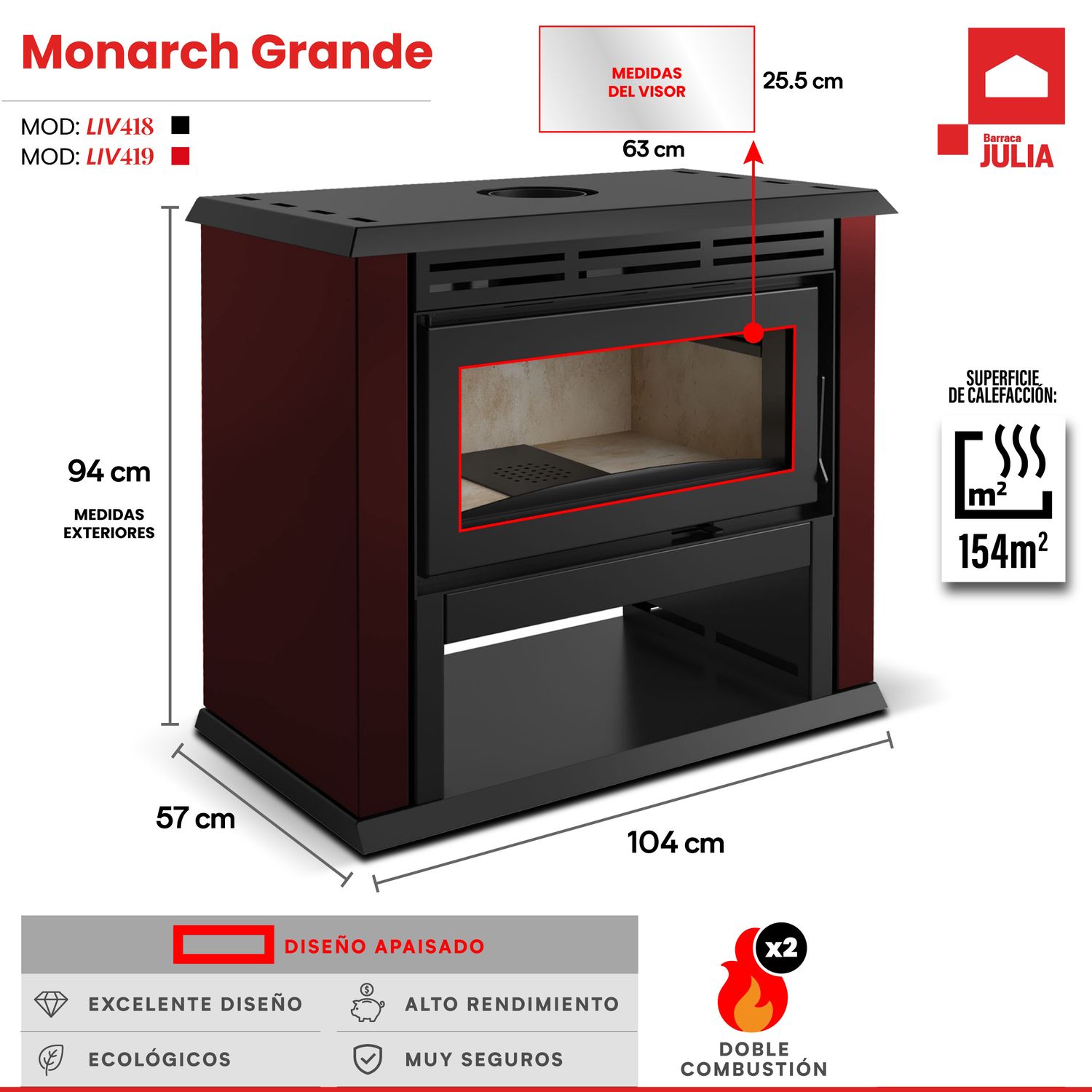 -Diseño apaisado, más cómodo para cargar leña.