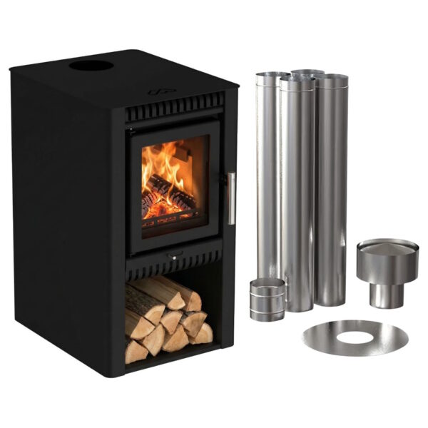 Calefactor A Leña Metávila D400EXP, 56m2 – Con Kit De Caños (Pared)