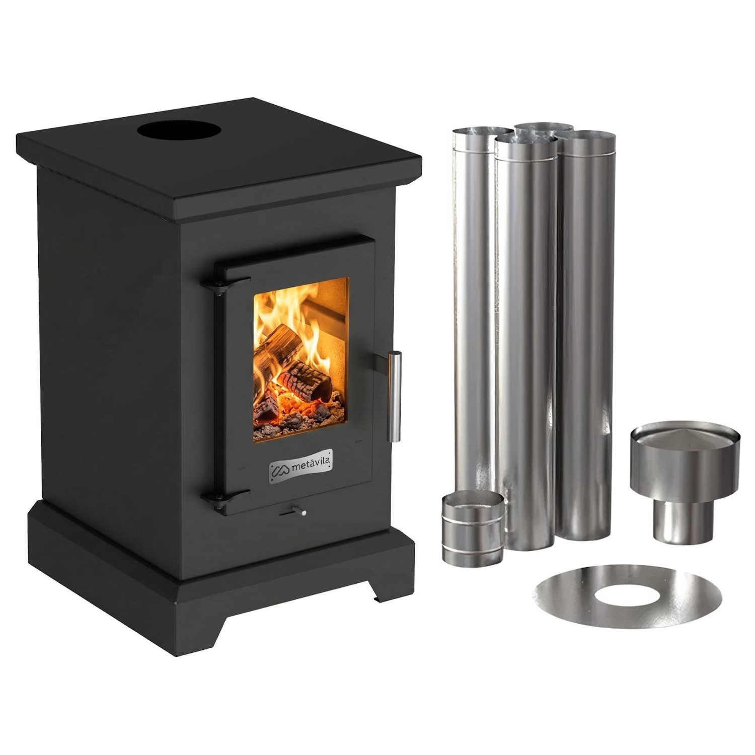 Calefactor A Leña Metávila D400EXP, 56m2 – Con Kit De Caños (Techo)